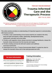 Trauma Informed Care and the Therapeutic Process 2 Day Onsite Training Flyer May 11,12 2023 by BalanceAdmin | Mar 24, 2023 | 0 comments Submit a Comment Cancel replyYour email address will not be published. Required fields are marked *Comment * Name * Email * Website Save my name, email, and website in this browser for the next time I comment.